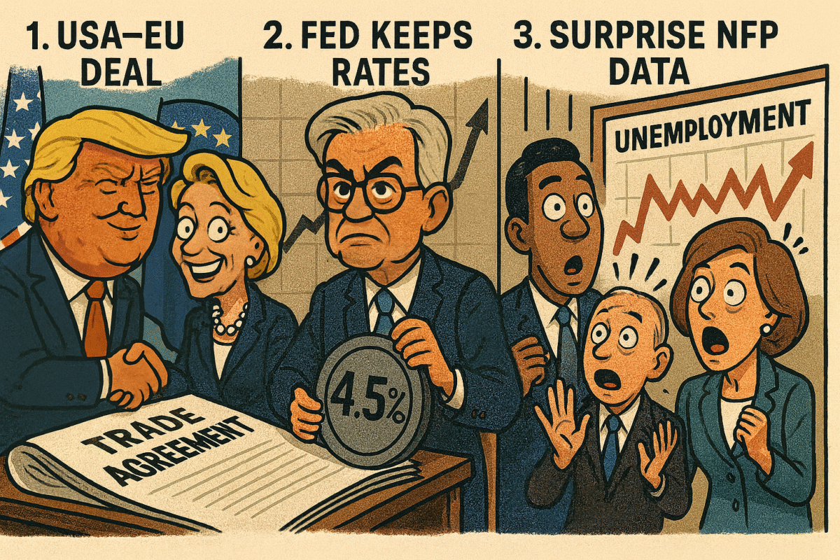 Klíčovou událostí měsíce se stala dohoda mezi Spojenými státy a Evropskou unií. USA uvalily na dovoz evropského zboží cla ve výši 15 %, což je sice méně než původně avizovaných 30 %, ale stále výrazně více než před rokem.